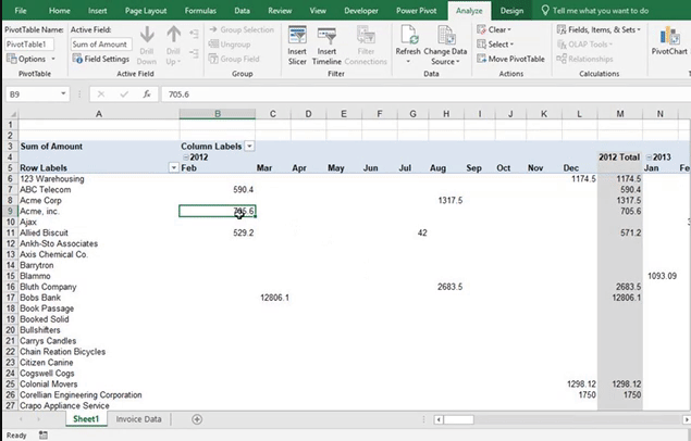 We can use Calculated Items to merge multiple row items in a PivotTable. For example, you would use Calculated Items if you had data for North, South, East and West Yorkshire and you wanted to merge the data into one Item called Yorkshire.