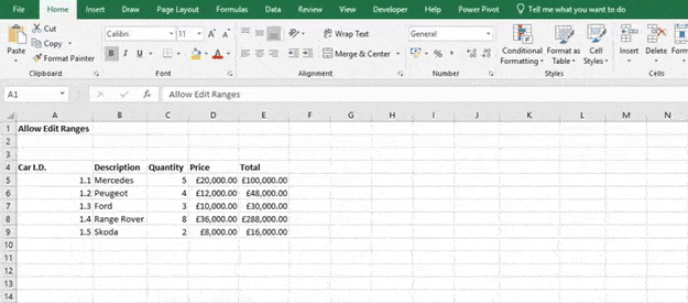 8. Finally protect the worksheet
