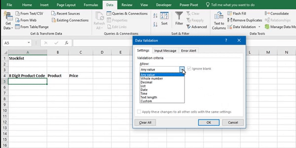 Stop will not allow wrong data to go into a cell