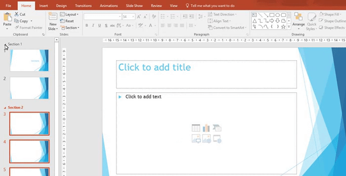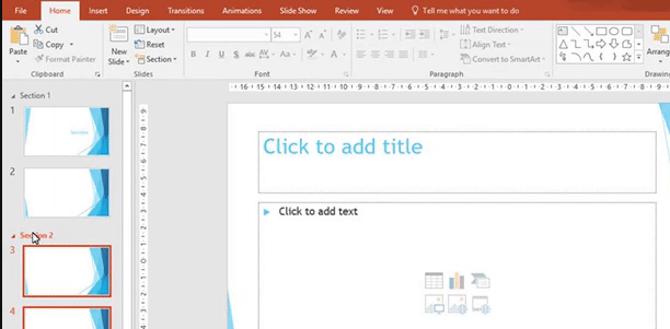 To access the Reuse Slides tool, go to the Home tab and choose the bottom half of the New Slide icon. In the dropdown, click on Reuse Slides. In the Reuse Slides pane on the right-hand side of your screen browse for you presentation that contains the slides you want to reuse. Once you’ve found the correct presentation, select the slides that you want to reuse.